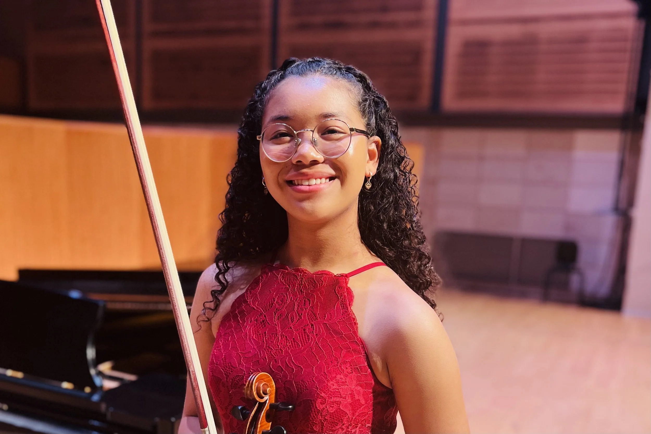 Sydney is a 13 year-old violinist from Sausalito CA who is passionate about creating beautiful sounds on her instrument to tell a story and express herself. Sydney began violin at age 3 and studies with Elbert Tsai at the San Francisco Conservatory of Music. Sydney had her solo debut with the Mill Valley Philharmonic in February 2024, and will be soloing with the Marin Symphony Youth Orchestra (MSYO) in May. She has received top prizes in competitions such as KAMSA, Pacific Music Society, ENKOR, Marin Music Chest, and U.S. Open Music Competition. Sydney is the Co-Concertmaster of the MSYO and is the violinist for the Onde Trio which won second prize at ENKOR. Sydney has attended prestigious summer programs including Center Stage Strings and Sphinx Performance Academy, and will be attending Music@Menlo this summer. Outside of violin, Sydney enjoys painting, embroidery, math, and singing in her school’s musical.
